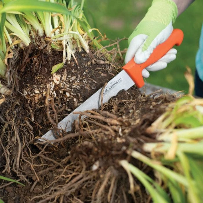 The Leonard Wavy Edge Stainless Steel Cut All Knife is a versatile tool that can be used for various gardening and landscaping tasks such as harvesting vegetables, dividing perennials, cutting sod, or as a utility knife.